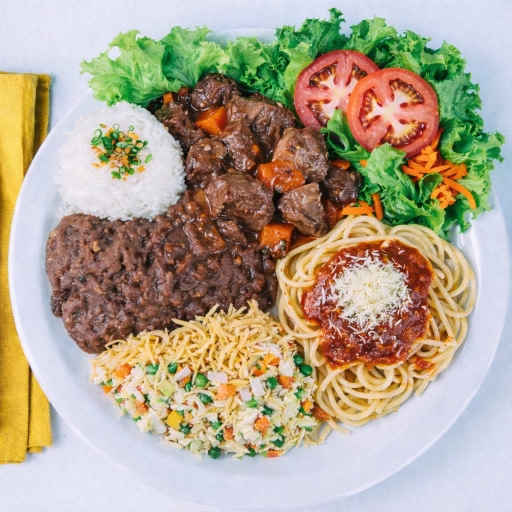 Arroz, Tutu, Macarronada, Salpicão e Salada